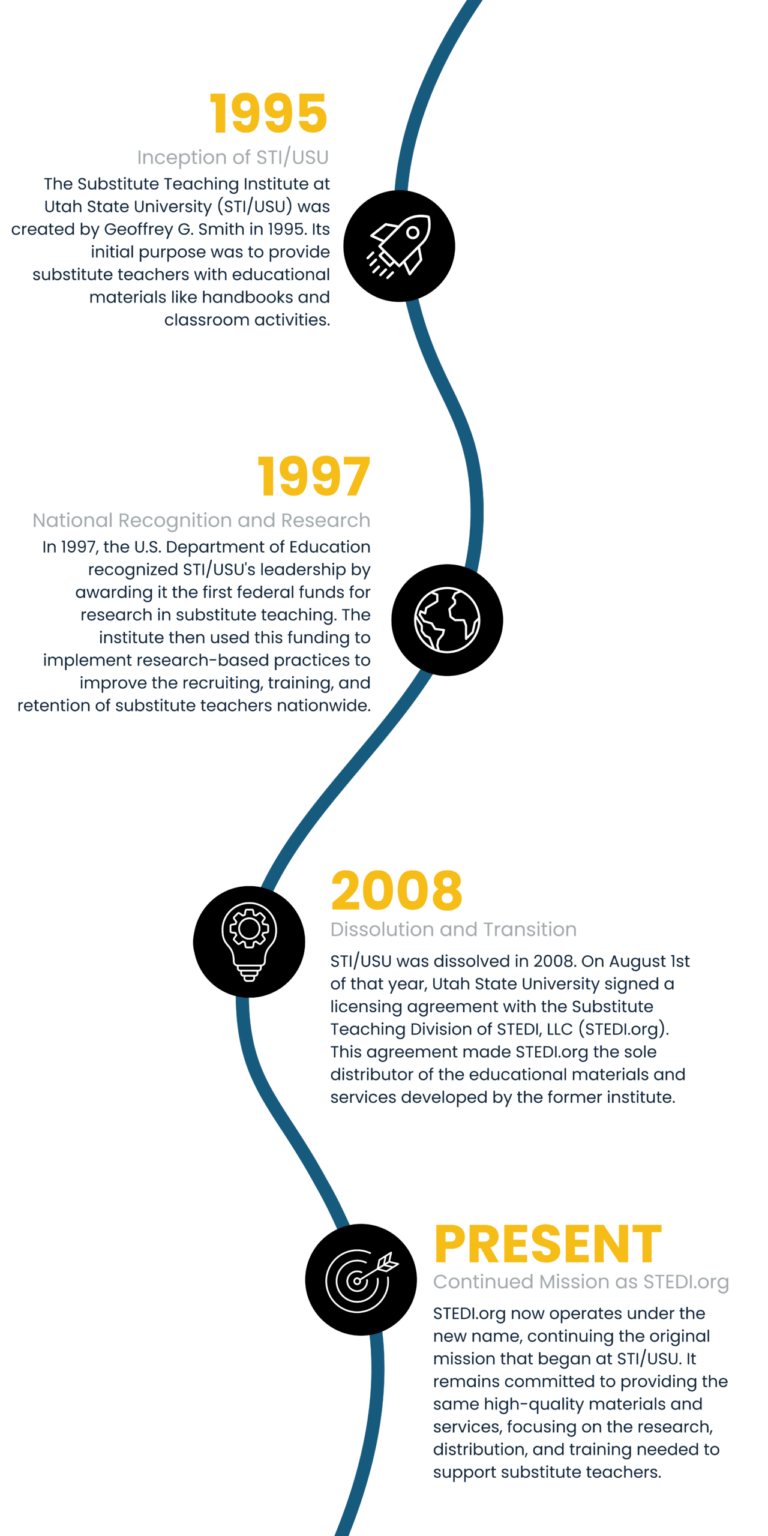 STEDI.org is the sole source distributor of the Subskills Online Training Courses, Classroom Management CD, and the Substitute Teacher Handbook 10th Edition. STEDI.org distributes the handbook as textbooks to colleges where the books are sold to their students at $24.95. Quantity discounts are available by calling 800-922-4693. Click here to download the SoleSource Affidavit.
